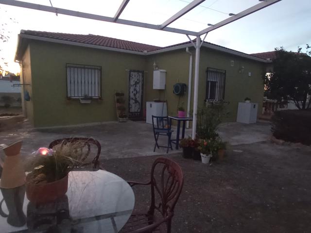 The property comprises of two bedrooms, sitting room, dining room with built-in fireplace, fitted kitchen, bathroom, garage, BBQ area & patios. The house is built on a 2500m2 plot of land, all fenced & planted with a selection of trees & mature plants. The property is sold fully furnished.
